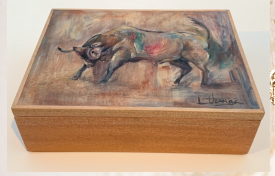 Caja de nogal pintada con óleo